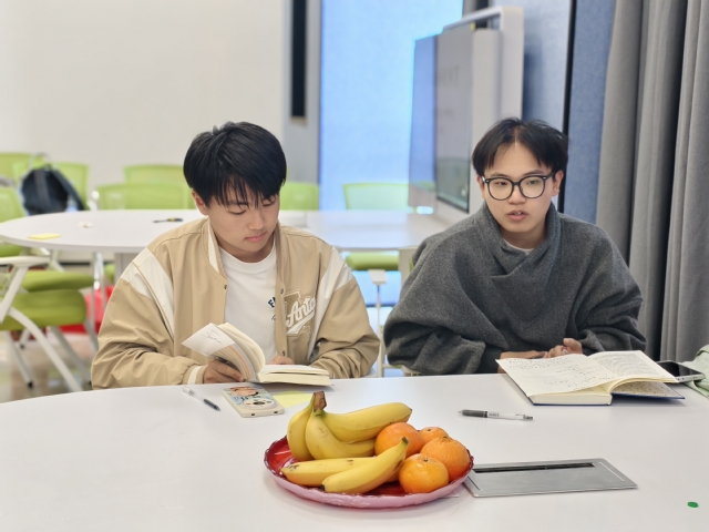 在“师生共读”环节,师生们围绕《简爱》、《平凡的世界》、《活着》、《追风筝的人》等中外畅销书籍中人物命运的转折点展开讨论。活动组织者提前精选了参与者分享书籍中的关键片段,引导参与者通过“如果我是TA,会怎么做?”的代入式思考,探讨了不同选择背后的成长命题。更有小组合作设计“人生B计划”,分析不同路径的代价与收获,如讨论《活着》中的福贵若在败家前幡然醒悟,能否改写悲剧?同学们通过对比原著与改编结局,深入探讨“个体选择与时代洪流的交织”。现场观点碰撞不断,笑声与沉思交织。