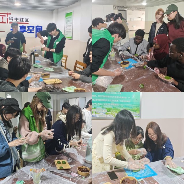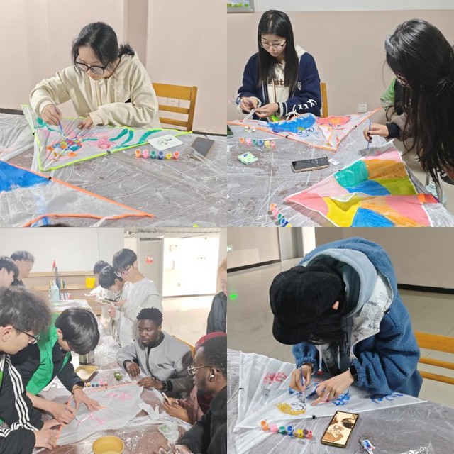 活动在一站式驿站宿舍区展开,现场设置了青团制作与清明风筝创作两大体验区。青团制作环节中,同学们在指导下将艾草汁揉入面团,专注完成擀皮、包馅、塑形等工序,翠绿的面团逐渐化作圆润饱满的青团。新鲜出炉的青团散发着淡淡艾香,参与者品尝自制成果时展露的笑容,成为对传统美食文化最生动的诠释。风筝创作区同样热闹非凡,学生们在素面风筝上挥洒创意,既有春意盎然的山水花鸟,也有寄寓理想的水墨书法。绘制完成后,大家互相品鉴作品,探讨传统工艺与现代审美的融合之道。