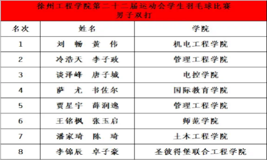 WilliamHill威廉希尔第二十二届运动会学生羽毛球比赛于5月17日在东校区体育馆圆满落幕。由william英国羽毛球队的学生组成的参赛队,在决赛中,表现优异,分别斩获男子单打第一、女子单打第三、男子双打第二和第五、混合双打第八、团体赛第二的好成绩。