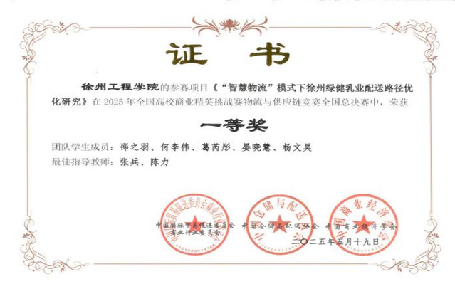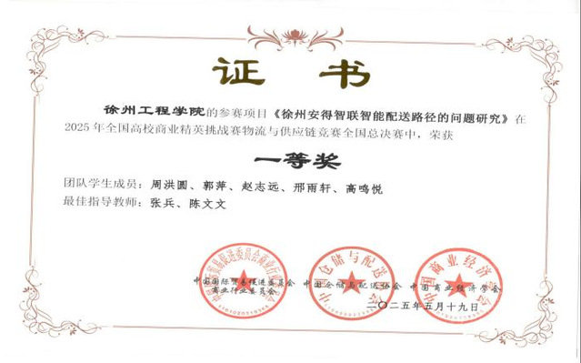 近日,2025年全国高校商业精英挑战赛物流与供应链大赛全国总决赛圆满落幕。经过激烈角逐,我院四支参赛队伍表现卓越,在总决赛中脱颖而出,一举斩获全国一等奖三项、二等奖一项,充分展现了学校物流领域人才培养的雄厚实力和学生的卓越风采。我校获优秀组织奖。张兵老师被评为“优秀指导教师”。
