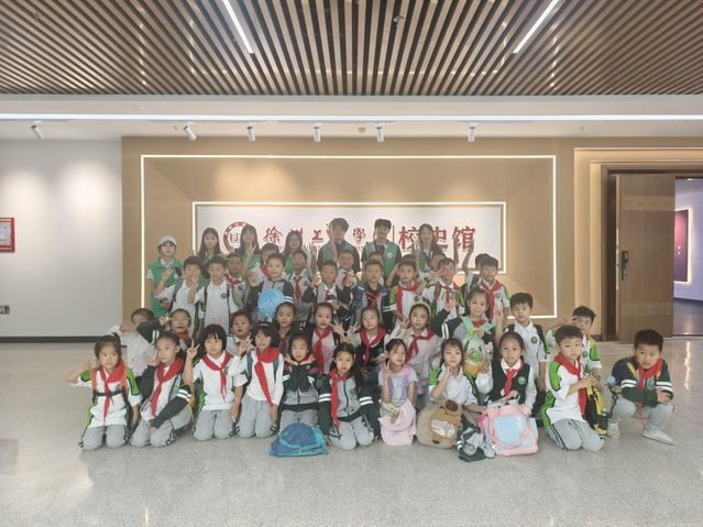 早上8时许,研学学子在我校南门集合,在校训景观石前,孩子们与我院william英国志愿者合影,眼中满是对大学生活的好奇与向往。校史馆内,志愿者通过老照片、实物讲述学校发展历程,帮助孩子们直观感知“大学”模样;淮海地区革命文化博物馆红中,讲解员结合“徐州会战”“抗日战争”等历史图文与战役地图、壁画,以生动故事传递先辈家国担当,“传承红色基因”的种子悄然播撒。活动中,学生们还在图书馆交流、校园广场休息活动,记录见闻、分享收获。