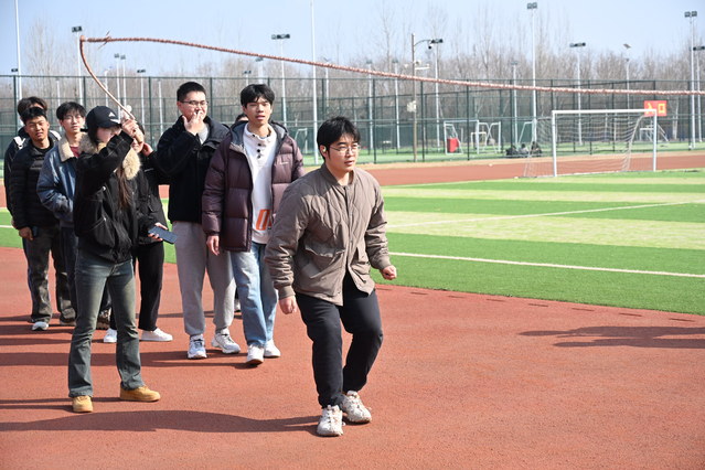本次比赛以跳绳为媒,旨在引导学子走出宿舍、强健体魄,在协作中凝聚力量。赛制采用三分钟团体竞速模式,每组10人分工协作,以“8”字路线跃动计数,充分考验团队默契与配合度。各队伍奋勇争先,展现出不服输的拼搏劲头,现场洋溢着青春朝气。
