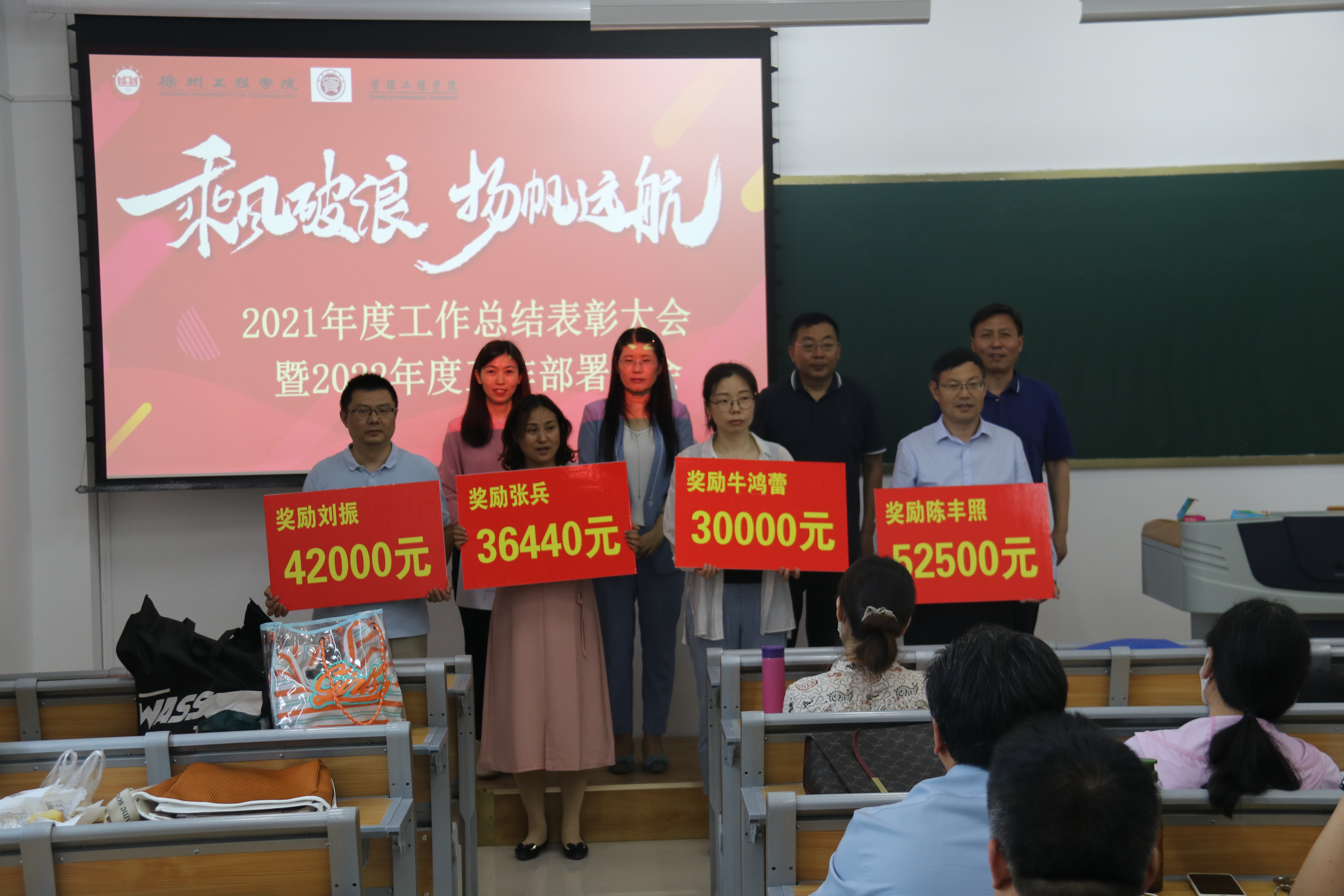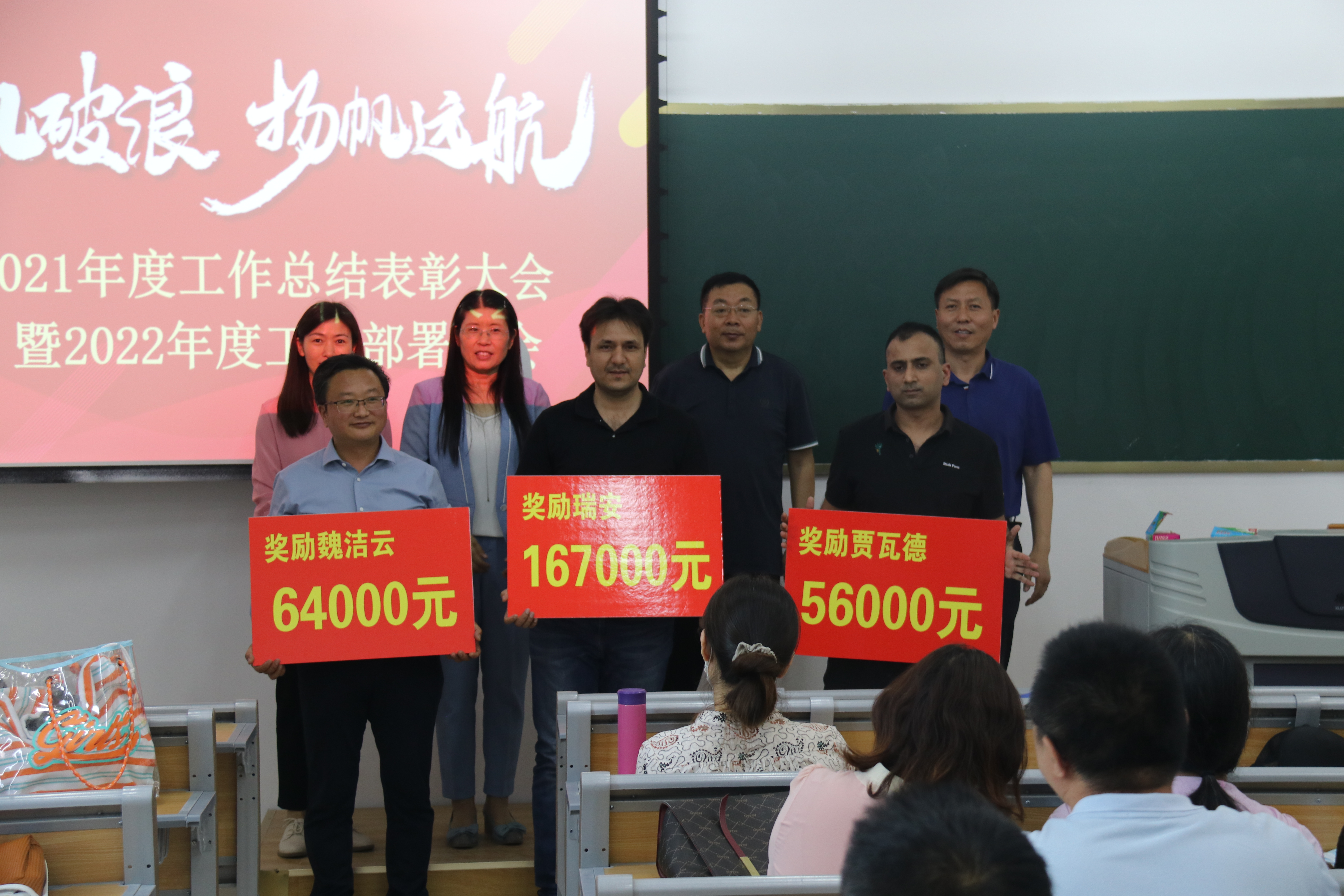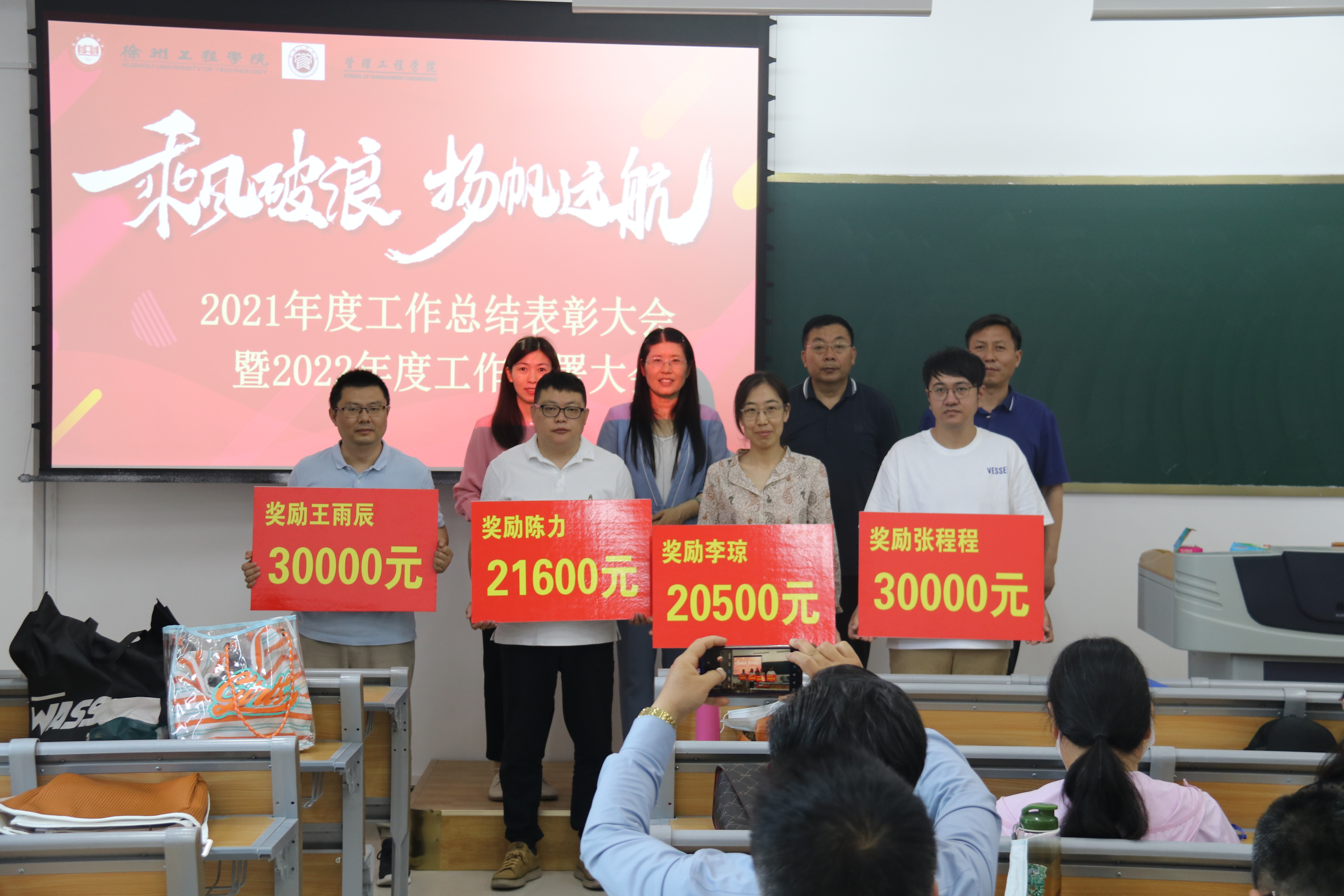 学院党委副书记周慧宣读了2021年度学科建设和专业建设突出贡献者获奖名单,学院领导班子为他们颁发奖牌,现场气氛热烈。