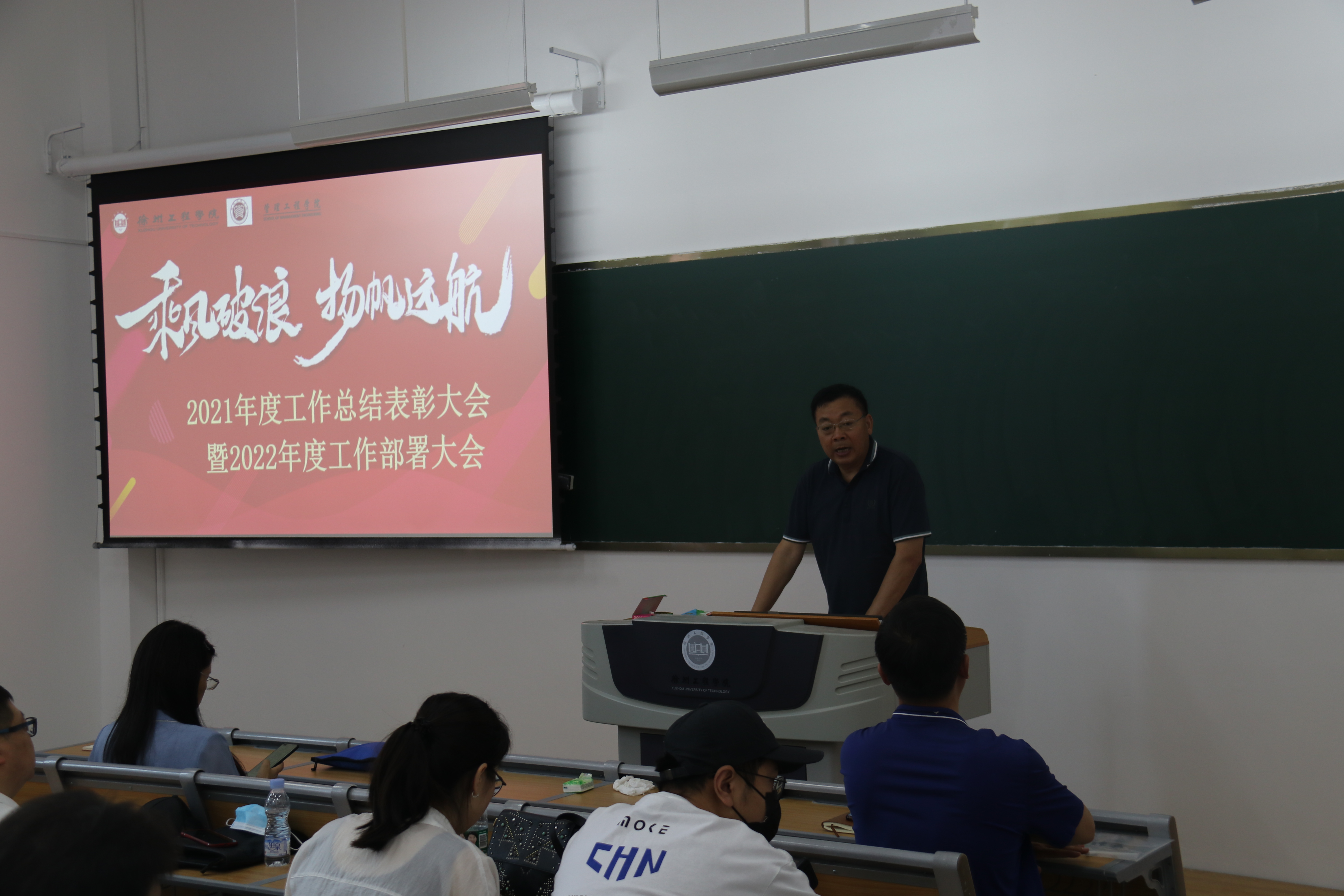 最后,崔德才书记在表彰会上做总结。他向受到表彰的教师表示衷心的祝贺!他强调,学院进入了高质量发展的关键期,全院教职工要不忘初心、凝心聚力、踏实进取,推动学院更好更快发展。