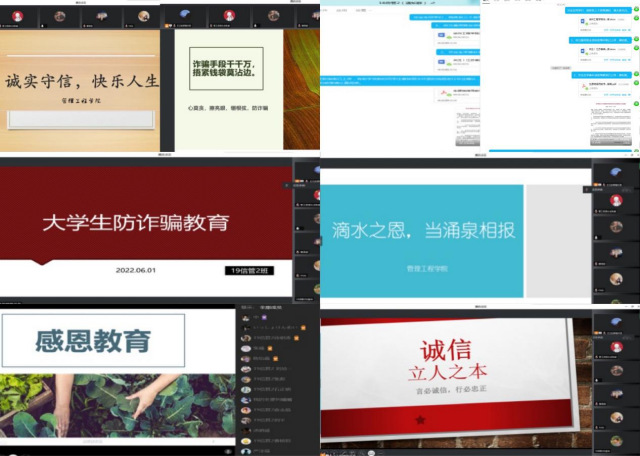 各班分别从“什么是诈骗”“诈骗的危害”“如何防范诈骗”三个方面讲解诈骗知识,并总结出几类经典的诈骗手段,如网络刷单、冒充快递诈骗、助学金诈骗、客服退款、游戏诈骗等。同时,老师和班委带领同学们学习典型的诈骗现象,引导同学们分享自己所见所闻的诈骗案例,用真实案例提醒同学们吸取经验教训。讲座还主要介绍了诚信及金融知识普及、预防金融诈骗、电信诈骗、远离不良贷和套路贷等方面的知识。防诈骗安全教育讲座实提高了学生对诈骗的识别和应对能力,有利于学生掌握一定的防诈骗的技巧,保护学生身心财产安全,提升大学生的安全防范意识。