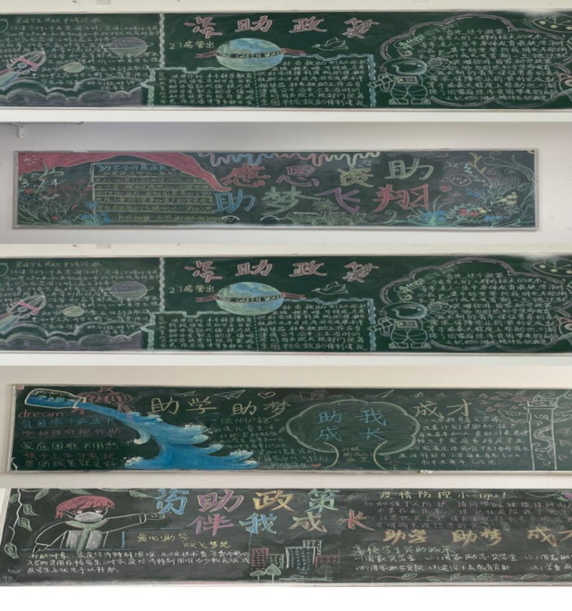 学院组织各班级以黑板报形式向同学们普及诚信资助相关知识。此次活动得到了各班级的积极响应,各班广泛查阅相关资料,搜集整理素材,集思广益,认真创作,精心描摹,设计新颖,文字内容丰富,排版有条有序。不仅详细介绍了国家对学生的各项资助政策,更充分展示学生在诚信中自强不息立志成才、敢于担当的精神风貌。