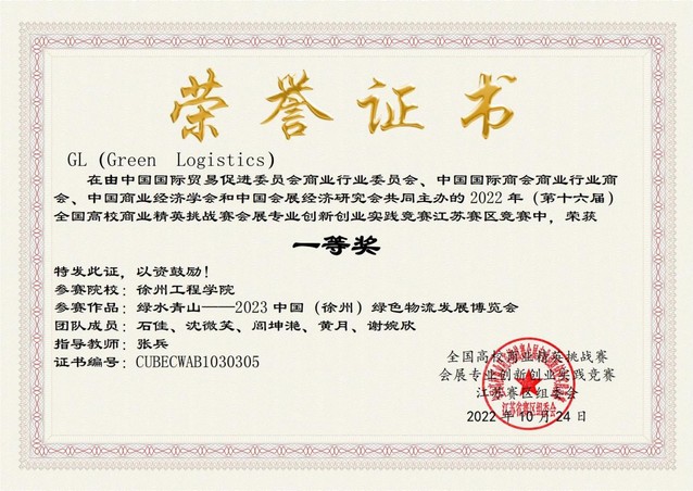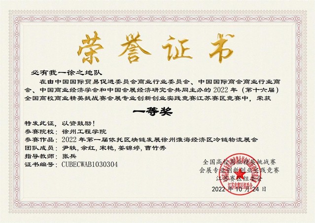 年(第十六届)全国高校商业精英挑战赛会展专业创新创业实践竞赛江苏赛区竞赛中,荣获
