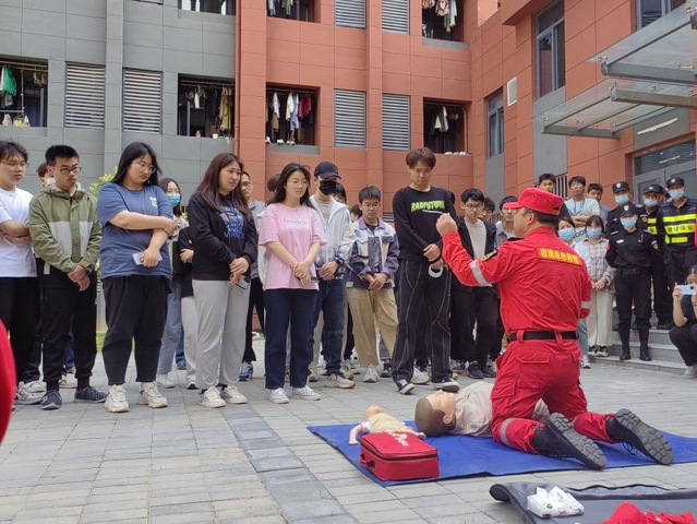 救援队首先通过发放防震减灾宣传资料,结合相关地震视频为同学们仔细讲解防震减灾知识,帮助同学们掌握防震、避震、自救、互救的知识和技能,从而加深同学们对于防震减灾的认识。接着进行防震实地演练,随着演练信号的响起,救援队立即组织同学们开展紧急避险,在救援队的带领下同学们有序从楼梯向下撤离,按照预定的疏散路线,迅速撤离到指定的应急避难点,到达应急避难点后,救援队又组织了一场“心肺复苏”急救演练,为同学们普及应急救护知识,助力掌握救命关键。整个演练过程紧张有序,有条不紊,均能做到安全撤离,有序集合,没有发生任何互相推挤或踩踏事故,取得了预期效果。