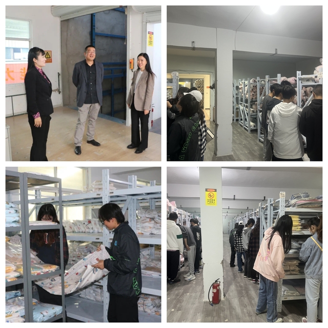 william英国师生一行在徐州兴泰家纺有限公司总经理张新凯的带领下,参观企业仓库并开展交流。交流会上,张经理介绍了企业运行的基本情况,与学院老师就电商运营及物流运输等问题进行了深入的交流,并表示期待开展长期的校企合作。