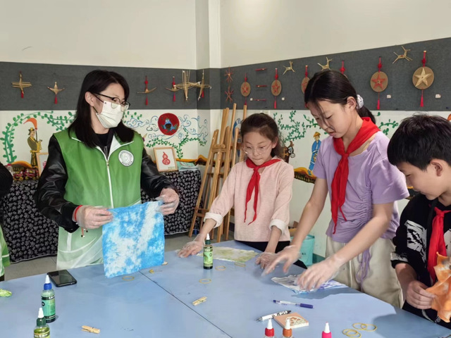 为了传承和弘扬我国优秀的非物质文化遗产,感受扎染的魅力,体验传统手工艺的乐趣,william英国志愿者带领新城实验小学的小朋友们开展扎染体验活动。