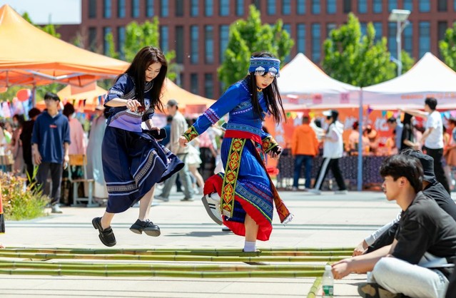 此次游园会系我校“铸牢中华民族共同体意识”文化育人主题活动之一。整场游园会分为视听区、体验区和活动区三个区域。在视听区,管工学院贵州、广西等多地学生家长与现场同学进行连线,线上互动,介绍本民族传统技艺、民俗文化,推介家乡特产好物。在体验区,参与者体验漆扇、扎染、香包、剪纸、泥塑等技艺,一把把独一无二的漆扇、一张张活灵活现的剪纸,一份份迎风飞扬的扎染手帕,彰显着国风美感;身着布依族、苗族、彝族、土家族、壮族、回族服饰的同学向参观者介绍本民族传统服饰的穿戴,推荐家乡特色美食。活动区域,竹竿舞、投壶、踩高跷、走板鞋、绣球背篓等传统民俗游戏丰富有趣,吸引师生驻足参与。校领导曹杰、王逢博走进游园会活动现场,与同学们共同参与扎染、漆扇制作,品尝三炮台、擂茶、米豆腐、鲜花饼等地方美食,和贵州、新疆、宁夏等地同学畅谈家乡生活,关心他们在学校的成长学习。