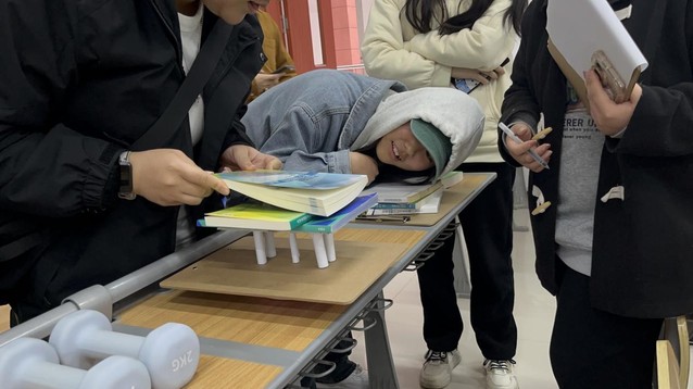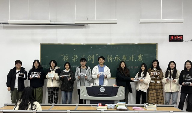 本次比赛要求参赛学生以有限的A4纸作为材料,在规定时间内设计搭建出一座能够承载重物的“桥梁”,并将书本作为重物,最后通过比较承载书本的数量与承重时长,评选出最能承重的“桥梁”。比赛过程中,参赛选手们分工明确,有条不紊,一张张普通的A4纸在他们手中很快就变为了一个个坚固精巧的构件,筑了一架架牢固又美观的纸桥。 此番比赛不仅为选手们提供了锻炼创新思维与动手能力的平台,并且也是一次展现团队精神的机会与挑战。