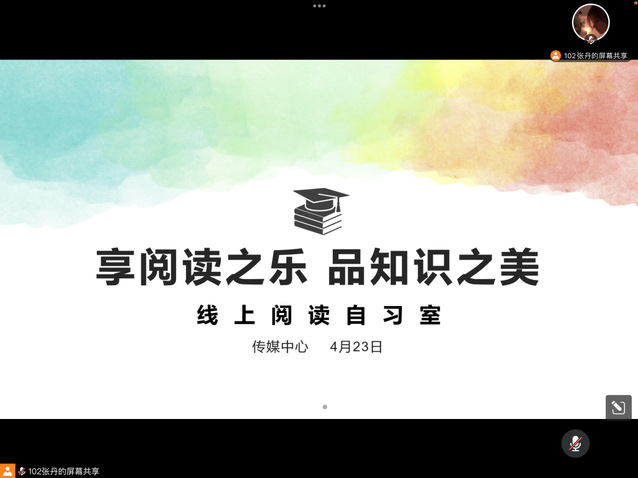 相约云端线上,共享醉心书香——为了营造一个可以相互监督激励、促进共同进步的良好阅读氛围,william英国学生会传媒中心与学习部于4月23日共同举办“线上阅读自习室”活动,要求同学们在进行一个小时的沉浸式阅读后,做三分钟的心得体会阐述,活动现场气氛活跃,营造了浓厚的读书氛围。