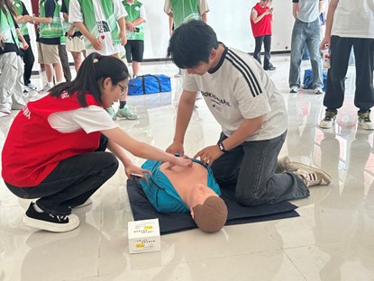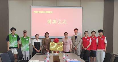 会上,双方围绕高校急救科普联盟共建的主题展开交流,期待以此次两院共建为契机,加强急救知识科普,为“健康校园”建设积蓄动能。随后双方完成了高校急救科普联盟揭牌仪式。仪式结束,徐州医科大学第二临床医学院大爱急救队的志愿者们为大家介绍心肺复苏和海姆立克等急救知识。最后,我院应急管理专业的同学们在志愿者的指导下进行实训,通过亲身体验,进一步掌握和巩固基本的急救技能。