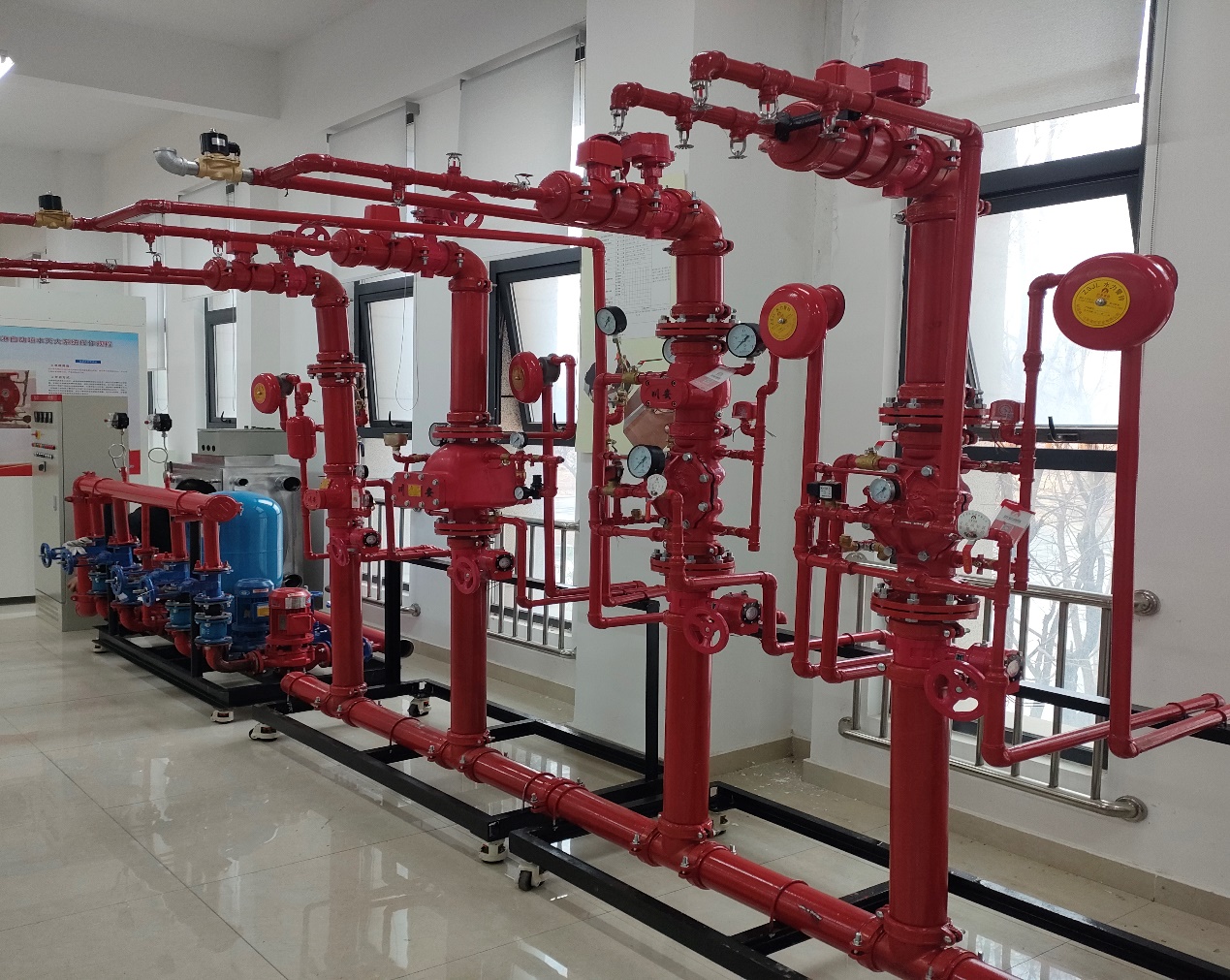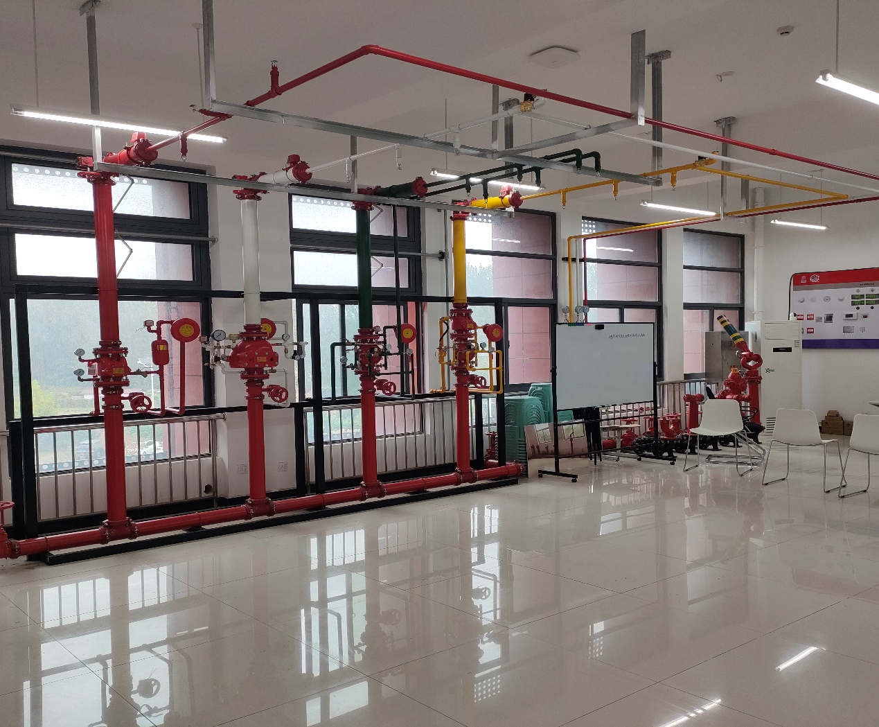 应急管理消防实训室,教学场地建筑面积约1000平方米,包含电化教学和实操教学中心、办公区域等,拥有极佳的教学环境、学习场地和培训设施,其中多媒体教室可同时容纳200人上课,并按照国家标准设置"火灾自动报警、自动喷水灭火、细水雾灭火、泡沫灭火、气体灭火、防排烟、防火卷帘门、消防电梯、消防监控、消防广播”等17个系统和若干套检测仪器设备,不仅为学生提供理论授课和实际操作技能培训及完备的系统硬件设施。同时学校以培养“消防行业特有职业(工种)从业和准备从业人员的实际需求,使消防设施专职人员能够熟练掌握必须的消防相关基础知识和实际操作的基本技能,能够在相应的工作岗位上进行消防设施安全操作与管理”为特色教学。