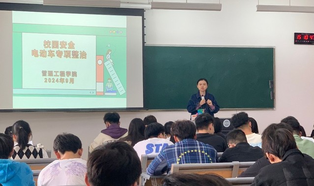 在会上,各年级辅导员首先从案例出发,强调电动车事故频发,已严重影响到了群众生命财产安全,校园也并非一方净土。因此,召开本次校园电动车专项整治主题班会及时必要。之后辅导员介绍了本次专项整治任务清单,如严查骑行中未戴头盔、违规载人、超速行驶、危险驾驶等违规行为、严查未在指定区域停放,影响消防通道、出行通道等违规停放行为、禁止未悬挂校园电动车号牌的电动车出入校园等。