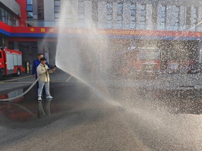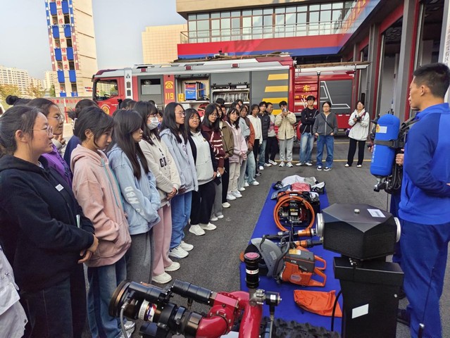 活动中,学生沉浸式体验消防生活,零距离感受“火焰蓝”的魅力。消防战士带领同学们依次参观了消防队的工作区、训练区、生活区、学习区。介绍了灭火器、救生照明灯、切割机,液压顶杆、消防机器人等消防专用器械的功能、使用方法,并向同学们展示了高楼攀登速降、四米高空救援的过程。体验的同学纷纷表示,今天厚重的消防救援服被穿在身上、高压水枪的压力打到身上,才真切感受到消防员的伟大。在活动过程中,应急管理专业同学老师还与消防员们沟通交流,了解应急专业学生的就业前景,以及技术防控在应急管理工作上的应用等。