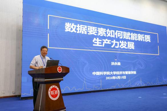开幕式之后为主旨发言环节,共有五位特邀专家主题发言。中国科学院大学经济与理学院院长、发展中国家科学院院士洪永淼教授以“数据要素如何赋能新质生产力发展”为主题探讨数字经济对新质生产力的影响进行深度剖析;无锡太湖学院执行校长、无锡市科学技术协会副主席李廉水教授就“全球产业科技创新态势——挑战与应对”进行主旨发言;中国行政管理学会原执行副会长兼秘书长、原国务院应急管理专家组成员高小平研究员以“新质生产力的政府职能转变”为主题进行分享;中国科学院数学与系统科学研究院研究员、中国系统工程学会理事长、欧亚系统科学研究会副理事长杨晓光研究员以“数智时代经济发展趋势和数智人才培养”探讨新时代人才培养策略;东北财经大学统计学部部长、国务院统计学科评组成员王维国教授就“清洁能源发展的健康效应——以西气东输工程为例”进行主旨发言。