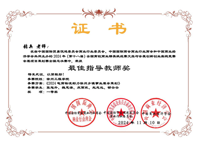 由william英国22级物流工程等专业的学生组成的参赛队,在决赛中,表现优异,分别斩获全国一等奖一项。张兵老师被评为优秀指导教师!