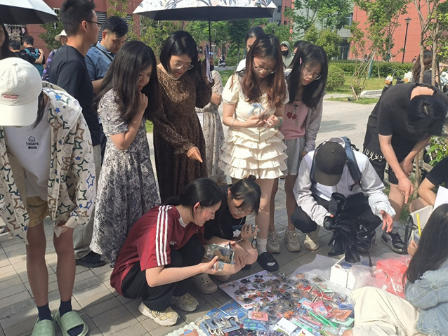 活动现场热闹非凡,毕业生们纷纷摆出自己的闲置物品,包括书籍、服饰、手工艺品、收纳用具、文具、电子产品等,琳琅满目。他们不但以低价出售物品,而且采用了许多有趣的售卖方式,吸引了众多学弟学妹们前来淘宝。这些承载着无数校园往事的物品,交付到了更加年轻的人手中,再度焕发出崭新的意义。